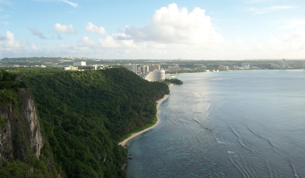 View of northern Tumon Bay, Guam from Two Lovers Point, Tamuning. This prominent cape is part of the limestone plateau that forms the northern part of Guam.