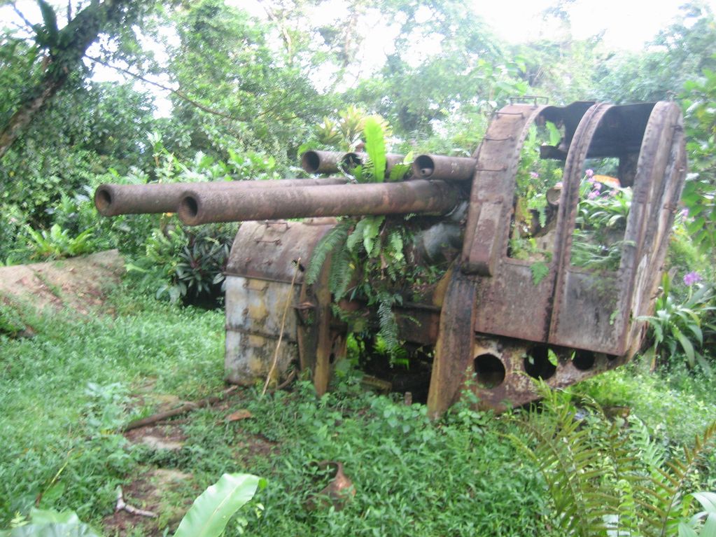 Japanese World War II anti-aircraft gun emplacement, Pohndolap Area, Sokehs Island, Pohnpei, Federated States of Micronesia, Overlooking the state capital, Kolonia, this north-south ridge was fortified by the Japanese during the war. They also built a road known as the "Artillery Road" to the ridge's summit.