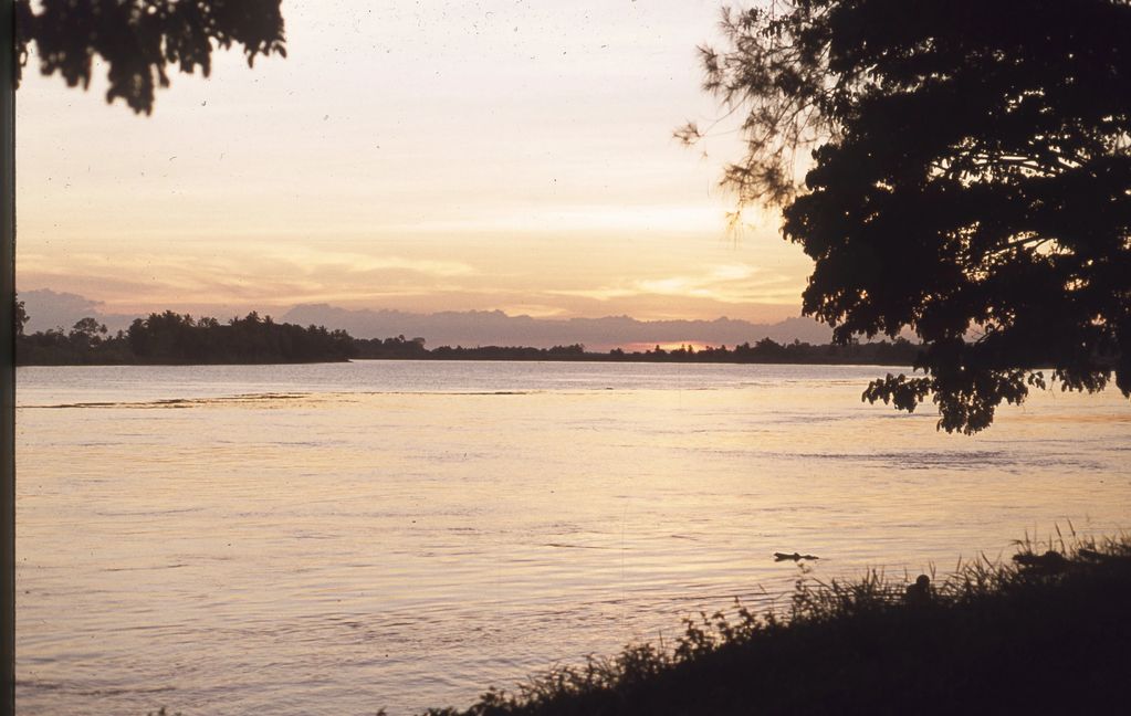 Sunset over the Sepik River at Angoram, East Sepik Province, Papua New Guinea (1978).